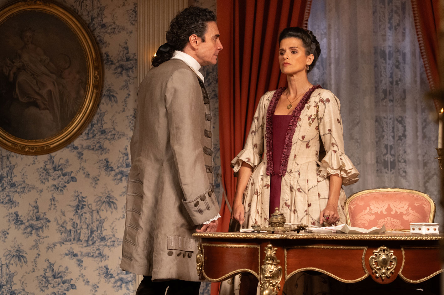 Los Gálvez de Aguirre celebran el compromiso de Leonardo e Irene, aunque las sonrisas forzadas no logran esconder la incomodidad. Entre copas y murmullos, el duque sorprende a todos con un anuncio inesperado sobre su futuro en la corte, un movimiento que podría alterar más de un destino.