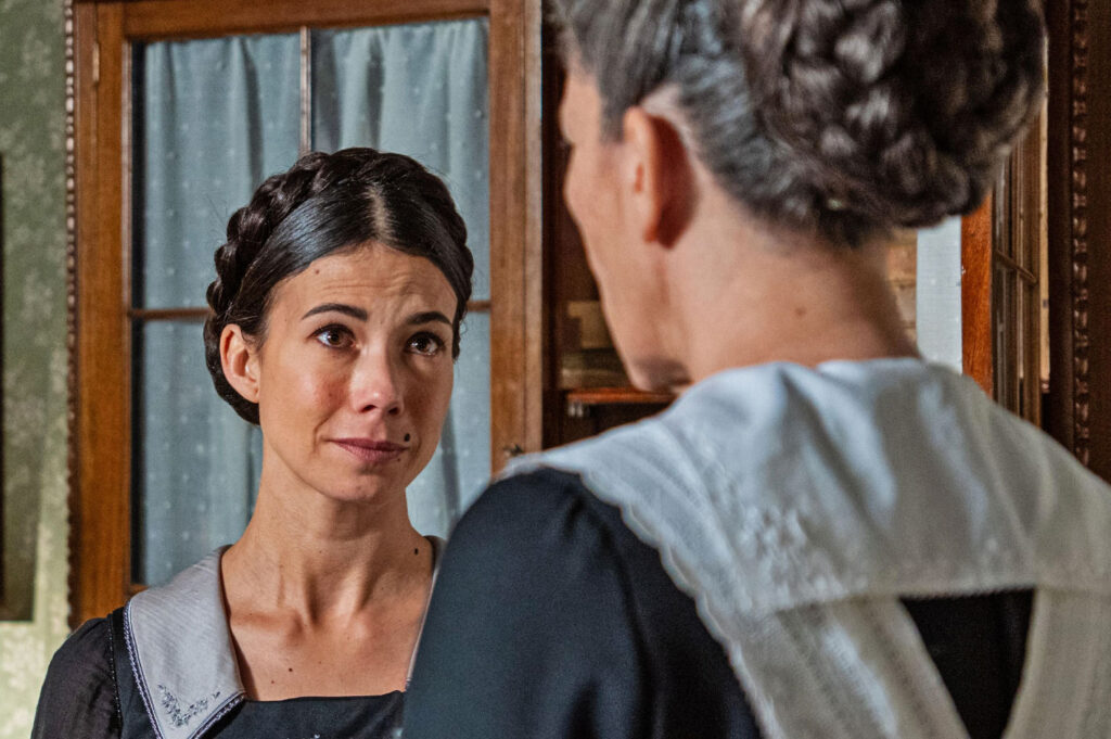 Teresa, desbordada tras el beso con Cristóbal, pierde el control del servicio y esquiva al mayordomo apoyándose en Petra, que escucha el duro relato de Prudencio y su intento de suicidio.