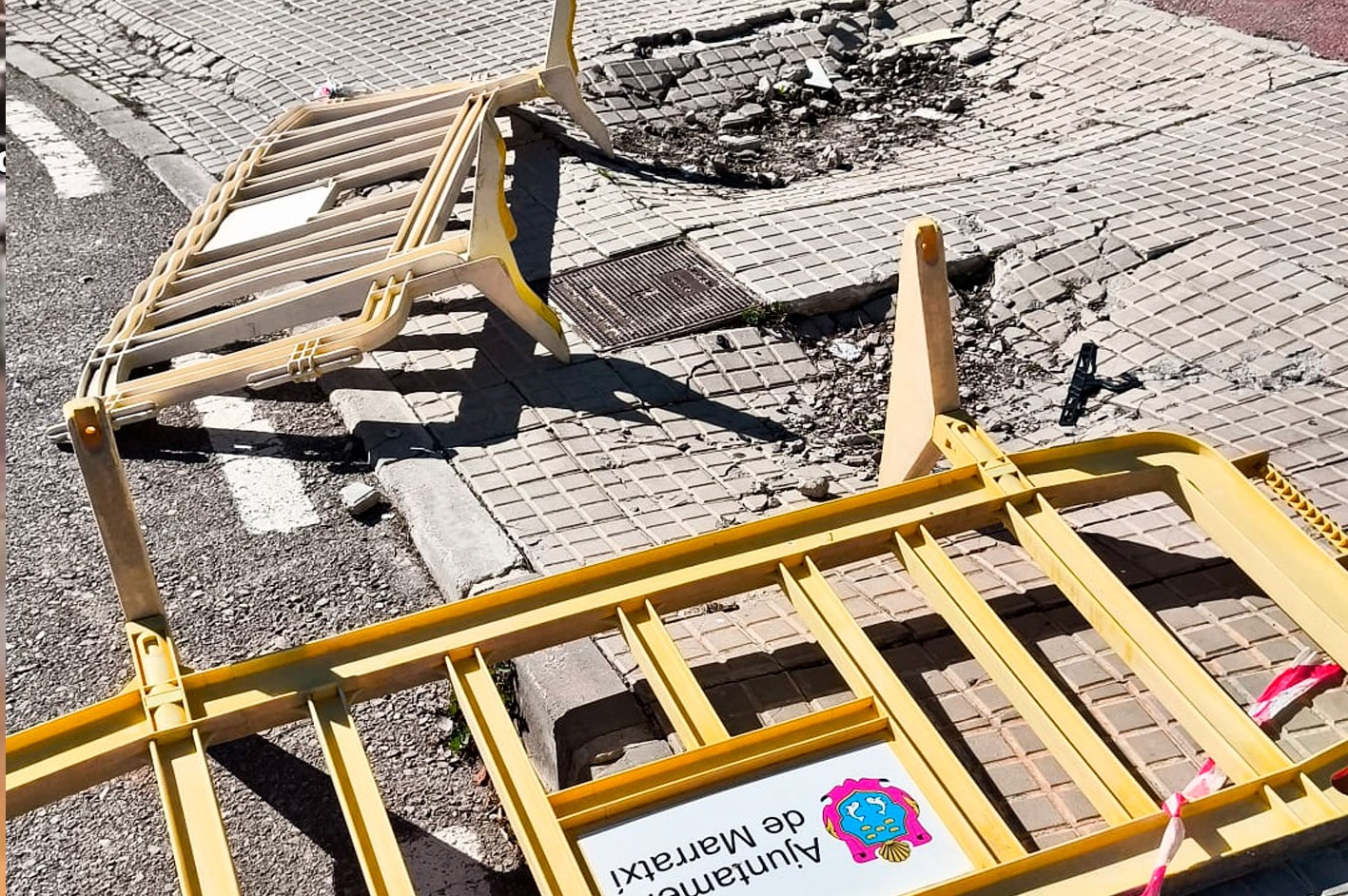 La solución del Ajuntament de Marratxí ha sido colocar unas vallas. Nada más. Vallas que, además, aparecen tiradas en el suelo sin fijación ni señalización clara. Una imagen que transmite abandono y dejadez.