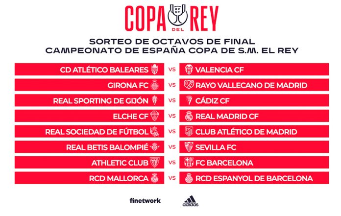 La eliminatoria a partido único se disputará el fin de semana del 15 y 16 de enero salvo en el caso de las que incluyen a equipos participantes en la Supercopa de España, que se celebrará durante la semana siguiente.