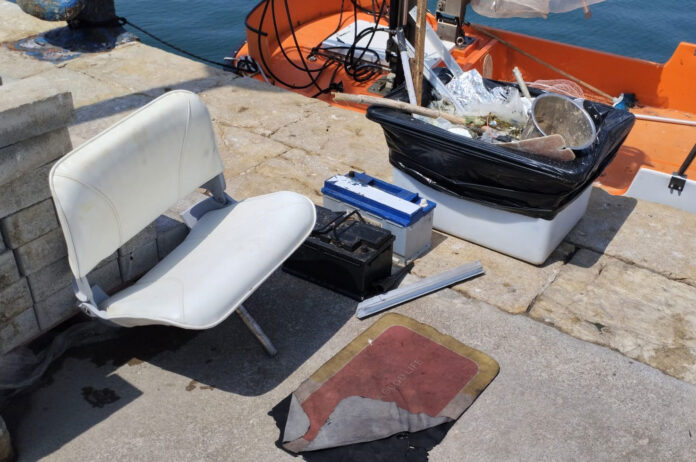 Neumáticos, baterías y hasta un cochecito entre los residuos recuperados por las embarcaciones de PortsIB.