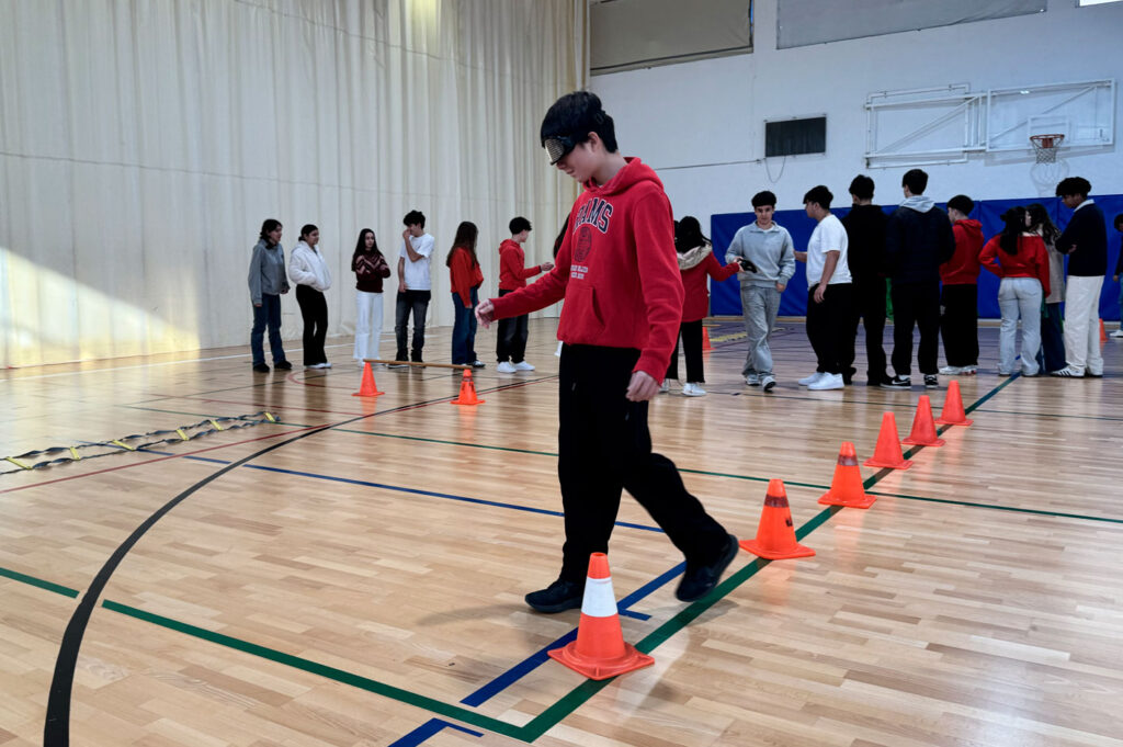 - Fase práctica (Circuito): Se instala un circuito en el patio o gimnasio del centro educativo. Los alumnos deben recorrerlo utilizando gafas de simulación, que alteran la percepción del entorno imitando los efectos reales del consumo de sustancias.