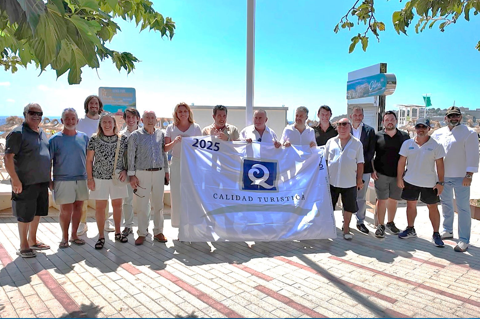 Calvià revalida las 15 banderas Q de Calidad Turística que acreditan la excelencia de los servicios de sus playas. Un año más, el municipio se consolida como el primero de Baleares y el tercero de España en número de banderas Q otorgadas por el ICTES. Este lunes se han izado las nuevas banderas. El consistorio ha elegido la playa de Es Carregador (Palmanova) para dar a conocer estas certificaciones, en un acto presidido por el alcalde de Calvià, Juan Antonio Amengual, y el director general del Instituto para la Calidad Turística Española y la Sostenibilidad, Fernando Fraile.