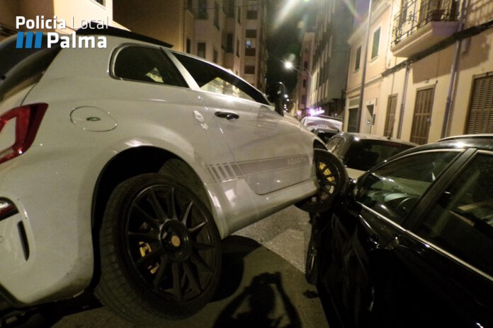 Ya en la madrugada, a las 00:45 h, en la calle Fra Lluís Jaume Vallespir, un conductor español de 21 años, que resultó ileso, perdió el control de su vehículo, que terminó impactando y quedando sobre el capó de otro coche que estaba estacionado. La medición de alcoholemia en este caso fue de 0,64 mg/l.
