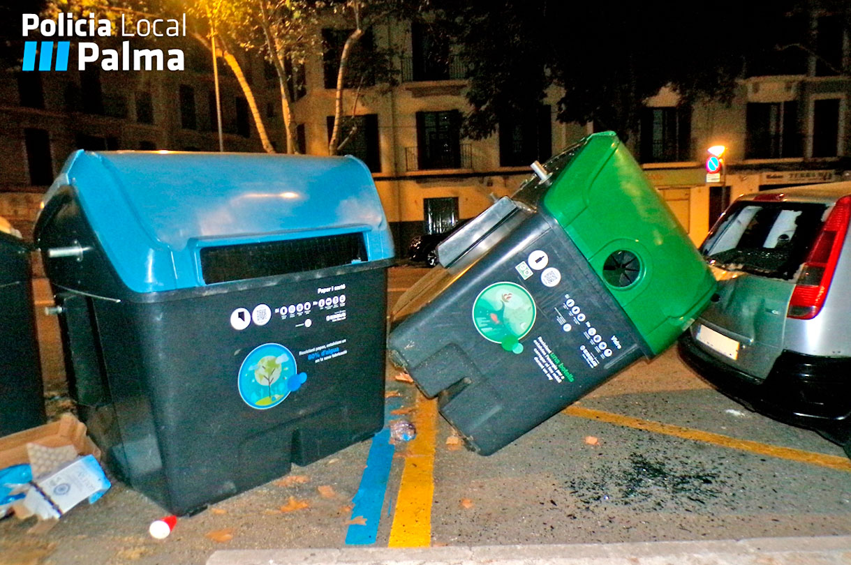 La Sala del 092, tras recibir varias llamadas alertando del accidente, comisionó la patrulla al lugar de los hechos, donde un turismo había impactado contra una batería de cinco contenedores, uno de los cuales había chocado a su vez contra otro vehículo estacionado. Los agentes localizaron al conductor responsable, un hombre español de 28 años, a unos metros de distancia, esperando una grúa sin haber dado aviso del accidente.