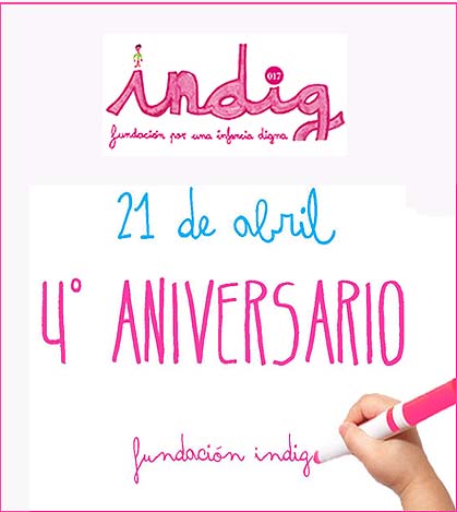 Con motivo del 4º aniversario de la Fundación Indig, se está organizando un concierto benéfico que tendrá lugar el 21 de abril en la sala URBAN, y para el que se contará con varios artistas, entre los que hasta ahora destacan Jaime Anglada, Catherine Fernández, Salvador Beltrán, Jaume Mas (La Voz) , y otros que están por confirmar, como Jorge Ruíz (de Maldita Nerea).