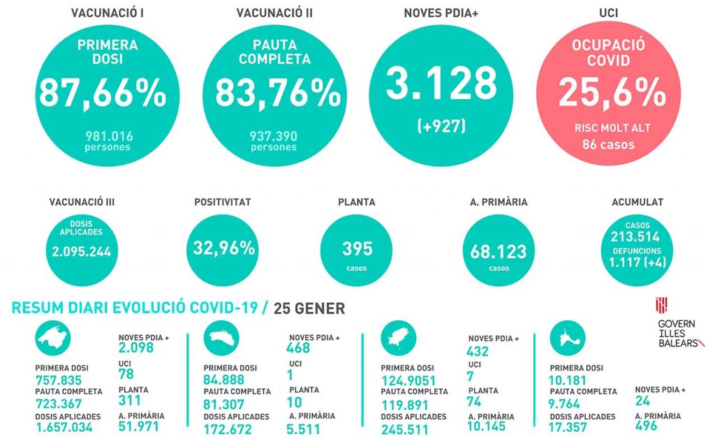 Salut notifica este martes 25 de enero cuatro nuevos fallecimientos relacionados con el coronavirus. El número de óbitos sube a 1.117 desde el inicio de la pandemia.