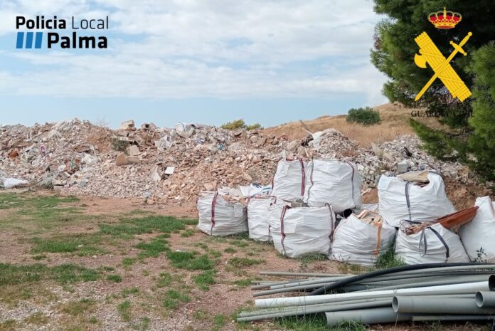 Policía Local de Palma y Guardia Civil desmantelan un vertedero ilegal de casi 1.000 m³ de residuos.