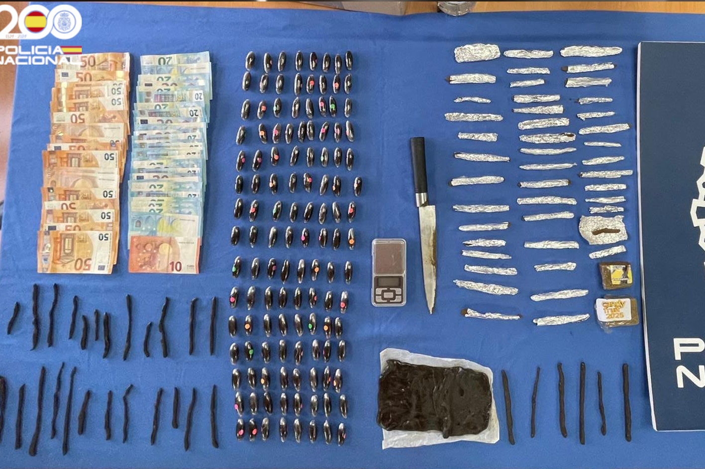 La Policía Nacional intervino 1.148 gramos de hachís, sustancias mono-dosis, bellotas y churros.