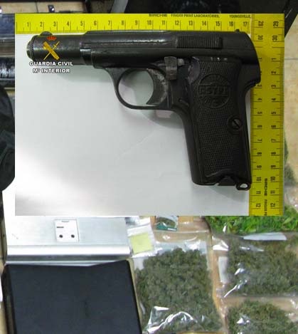 Así mismo en el registro se intervino un arma, una pistola de 9 mm y 38 cartuchos del mismo calibre. El arma está siendo analizada para comprobar si pudiera estar relacionada con la comisión de algún tipo de delito.