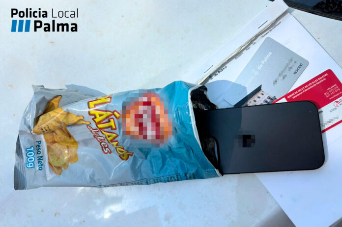 La Policía Local de Palma le acusa de un presunto delito de hurto. Llevaba el teléfono escondido dentro de una bolsa de patatas fritas.