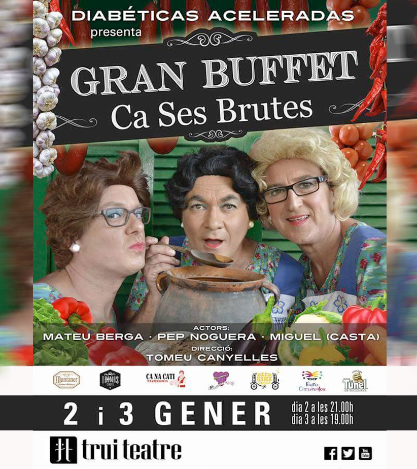 El Trui Teatre es el escenario elegido para presentar la nueva producción de Diabéticas Aceleradas, Gran Buffet (Ca Ses Brutes), que verá la luz nada más comenzar el 2016. El estreno será el 2 de enero para que el nuevo año comience con diversión, locura, música y alegría.