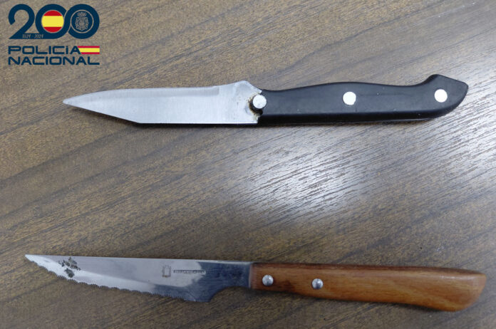 Cuando estaban en la puerta del domicilio, una patrulla de la Policía Nacional apareció en la zona. Los sospechosos intentaron huir, pero fueron interceptados por los agentes, que les incautaron los cuchillos.