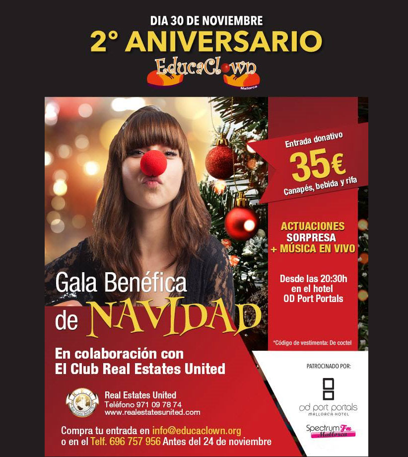 La ONG Educaclown celebra su segundo aniversario con una gala benéfica en el Hotel OD Port Portals de Calvià el próximo jueves 30 de noviembre con la que recaudar fondos para seguir desarrollando su labor.