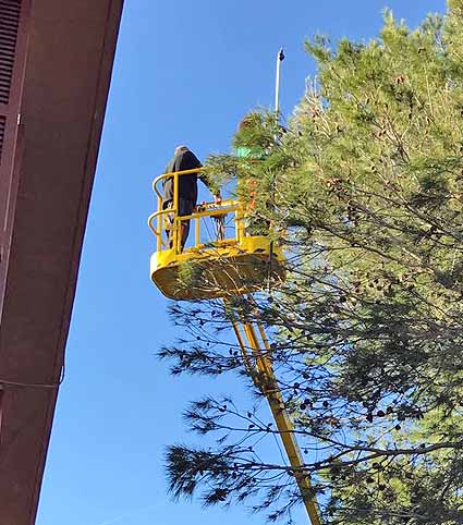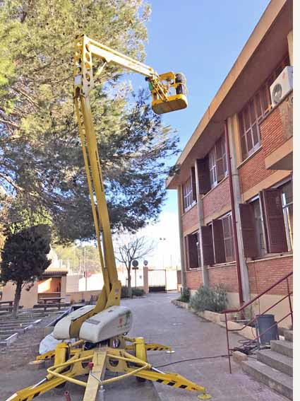 - Tratamiento de control durante los meses de diciembre de 2016 y enero y febrero de 2017, mediante la eliminación manual de las bolsas de procesionaria que hayan salido en los pinos que han sido tratados previamente de manera preventiva. Este tratamiento se ha realizado en dos fases, una primera durante los meses de diciembre y enero, de eliminación de aquellas bolsas que están a menos altura en el árbol y una segunda, durante el mes de febrero, para eliminar las bolsas más inaccesibles, mediante vehículo con plataforma.