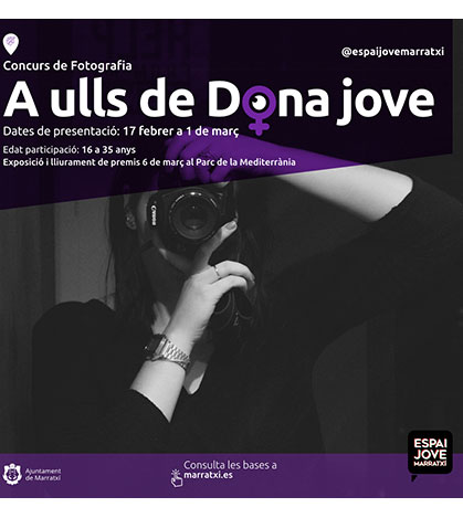 El Ajuntament de Marratxí, a través del área de Juventud, ha convocado el concurso de fotografía «A ulls de dona jove» para conmemorar el Día Internacional de la Mujer que se celebrará el próximo 8 de marzo. El objetivo es dar visibilidad a todas aquellas mujeres jóvenes de entre 16 y 35 años que tienen un talento especial para fotografiar otras mujeres (mayores de 18 años).