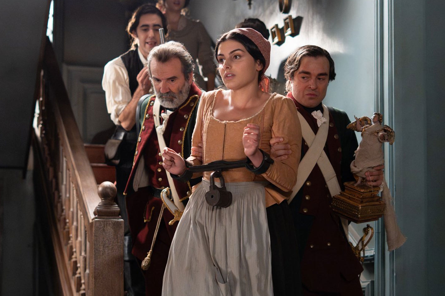 La tensión alcanza su punto máximo cuando la Santa Hermandad irrumpe en la Casa Grande por el robo de la talla sagrada. Victoria intenta explicar que sabe quién es el verdadero responsable, pero los oficiales no quieren oírla. Ya tienen un culpable decidido.