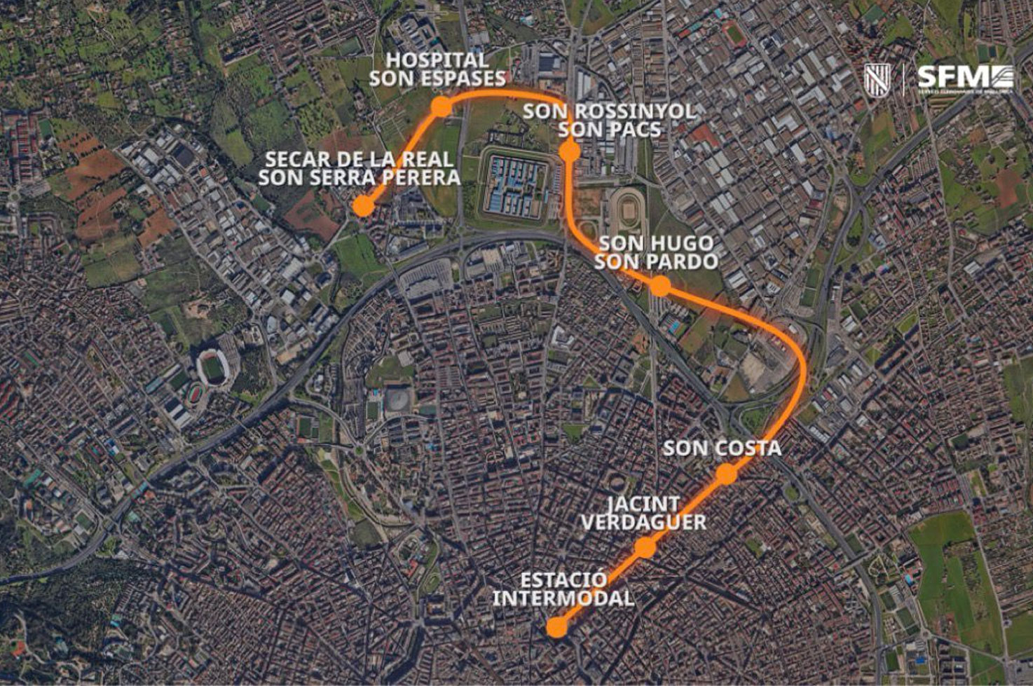 El trazado partirá de la estación intermodal de Palma y continuará por las estaciones actuales de Jacint Verdaguer y Son Costa. A partir de este punto, la línea incluirá cuatro estaciones nuevas que conectarán puntos estratégicos: