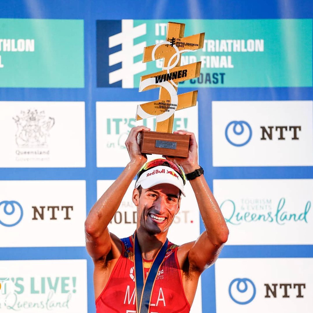 Con esta victoria el atleta calvianer iguala al también español Javier Gómez Noya que consiguió consecutivamente los títulos mundiales de 2013,14 y 15.
