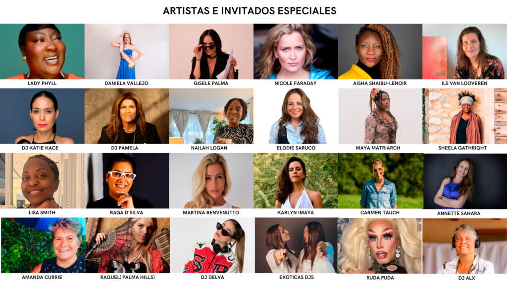 Artistas y ponentes destacados incluyen a Lady Phyll (Reino Unido), activista global; Daniela Vallejo (España), Miss España Trans; Gisele Palma (Brasil), educadora e influencer; la cantante estadounidense Sheela Gathright; la DJ sueca Pamela, Raga D’Silva (India/Reino Unido), escritora y activista LGBTQ+ y Martina Benvenutto, artista multidisciplinar como maestra de ceremonias. Más de 20 artistas internacionales y locales completarán la programación.