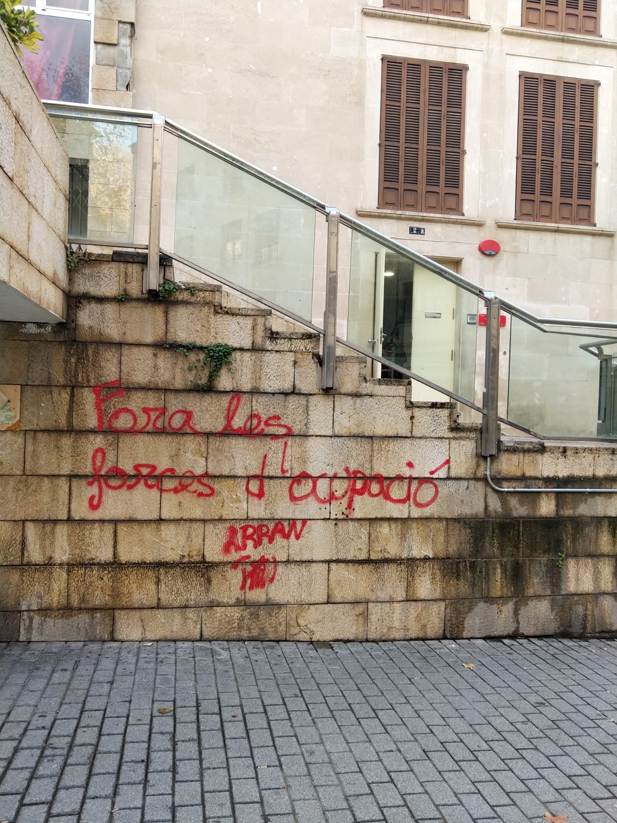 El Ajuntament de Palma condena este tipo de actuaciones y recuerda que vulneran la Ordenanza para el Fomento de la Convivencia Cívica, que prohíbe expresamente la realización de pintadas sobre cualquier elemento del espacio público, tanto en el interior como en el exterior de equipamientos, infraestructuras o elementos del servicio público, especialmente en zonas protegidas.