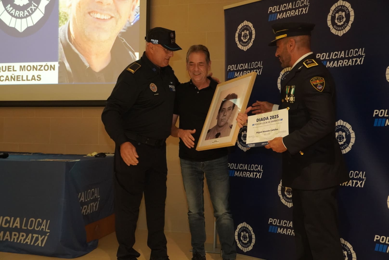 Uno de los momentos más aplaudidos fue el homenaje a Miquel Mesquida, voluntario de Protección Civil, cuyo gesto solidario se convirtió en ejemplo de compromiso desinteresado con la comunidad. También se rindió tributo al agente Miquel Monzón, que se despide tras una extensa trayectoria profesional marcada por la dedicación y el compañerismo.