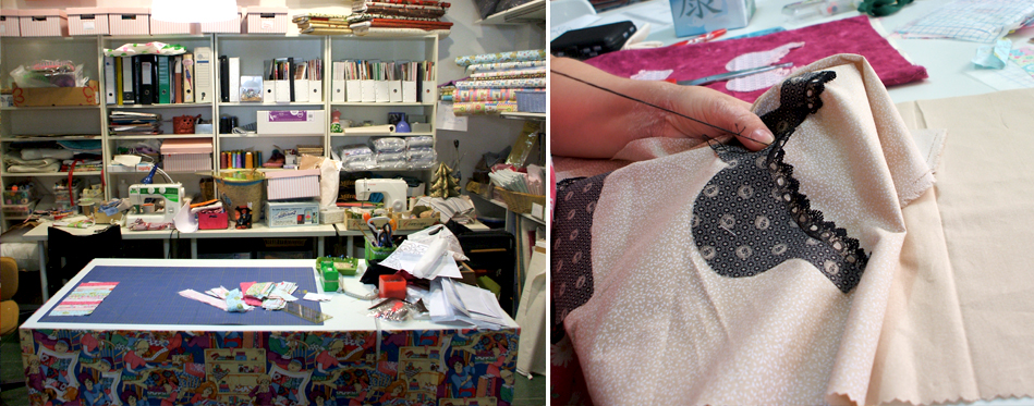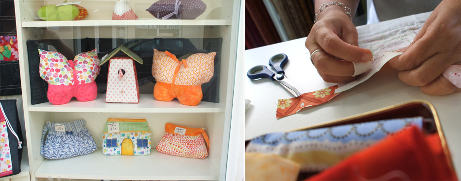 Xisca es hija de modista y descendiente de merceros. Sus primeros devaneos con el ‘patchwork’ empezaron a los 13 años, cuando hizo su primera colcha de recortes, aunque no tuvo una máquina de coser hasta la lista de bodas. A Carme siempre le gustaron las manualidades. Con 16 años empezó a estudiar Corte y Confección, y a partir de ahí nunca dejó de hacer cosas. También tiene el ‘patchwork’ como hobby, y el ‘decoupage’ lo conoció por una amiga que le propuso hacer un ‘acerico’ (un cojincito para clavar las agujas). Dice que pasó todo un fin de semana intentando cuadrar las piezas de tela, “pero como coroné la pieza con un botón, no se veía lo bien cuadradas que estaban. Son cosas que pasan”, dice. Se ríe, todas nos reímos, ¡quiero aprender a hacer uno!…
