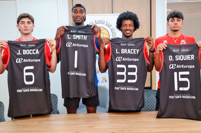 El Fibwi Mallorca Bàsquet Palma va quitando hojas del calendario de la pretemporada. En ese camino también hay espacio para actos muy especiales como son las presentaciones de los jugadores que han llegado esta temporada al equipo. Este viernes ha sido el momento en el que Lysander Bracey, Laron Smith, Juan Bocca y Óscar Siquier han comparecido ante los medios de comunicación para explicar sus primeras impresiones como jugadores del equipo entrenado por Pablo Cano. En un acto que se ha llevado a cabo en Puertas Domenech, Marti Josep Vives, director del equipo mallorquín ha sido el encargado de ir presentando uno a uno a los cuatro protagonistas del día de hoy a los que ha agradecido su confianza y el apostar por el proyecto del Fibwi Mallorca Bàsquet Palma.