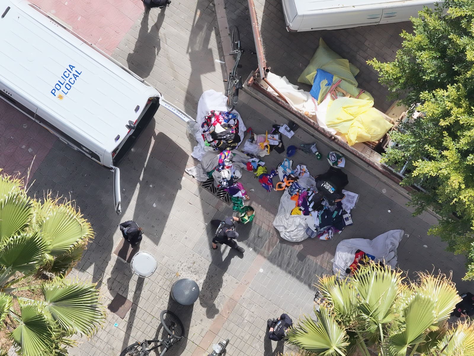 La intervención arrancó a las 11:00 horas. Fue una acción rápida y coordinada. Quince agentes sobre el terreno ejecutando un dispositivo diseñado para impactar en el corazón del “top manta”.