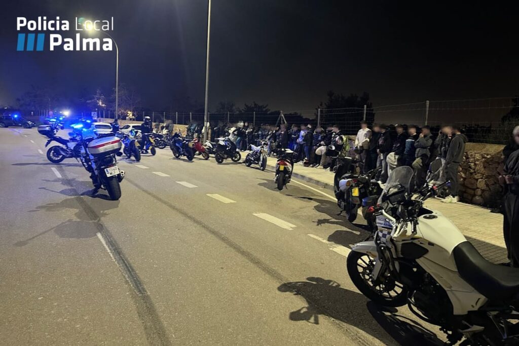 Son Ferriol volvió a convertirse este sábado en una concentración masiva de jóvenes, competiciones ilegales, drogas y un clima de riesgo constante. Los agentes de la Policía Local de Palma se encontraron un escenario lleno de peligro y ruido en la noche del pasado 6 de febrero en el camí de Son Roca, en Son Ferriol. La intervención respondió a meses de quejas vecinales por ruidos, consumo de sustancias y peligro para la seguridad vial.