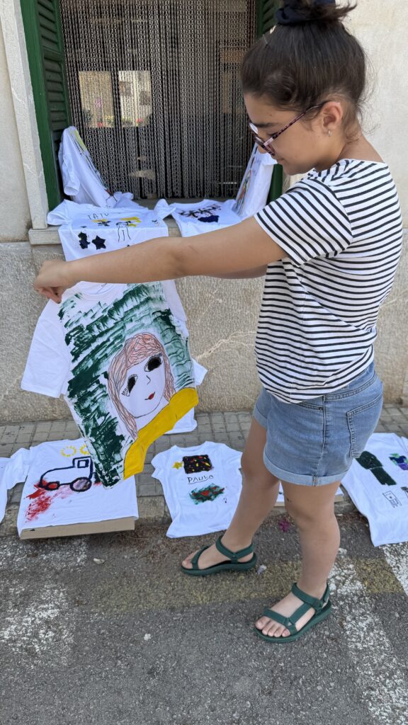 En la Plaza de Pina, entre las 10:00 y las 12:00 h, hubo talleres para sembrar semillas, pintar camisetas y realizar actividades sensoriales, además de juegos tradicionales, un espacio de intercambio de libros y cuentacuentos para todas las edades a cargo de Marian Vallès Estadella y Margalida Amengual Balaguer.