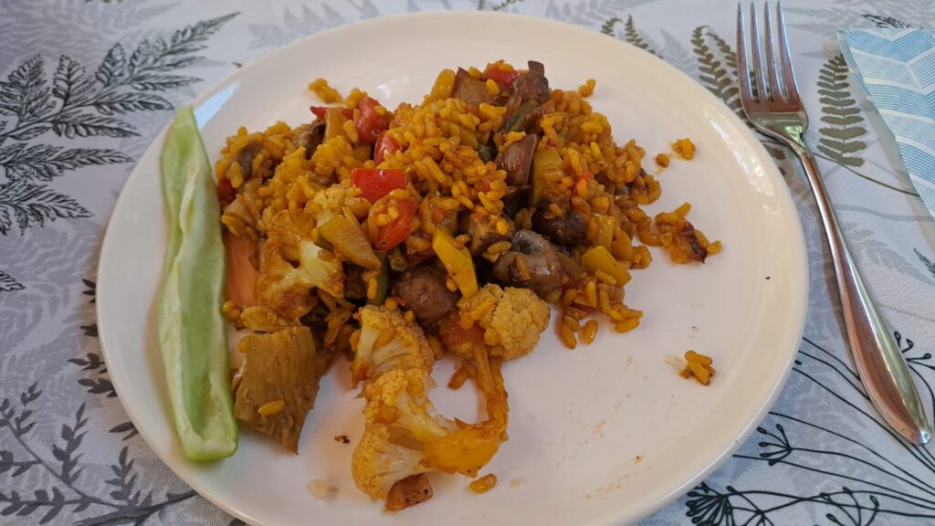 Amb els records de batllia i de les primeres eleccions municipals en democràcia arriba l’arròs, paella de verdures. Saborosa i al seu punt. Un èxit.