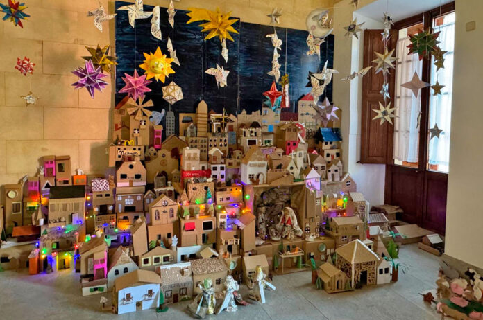 El resultado es un encantador «Belén Urbano», que representa un pequeño pueblo elaborado con esmero y creatividad.