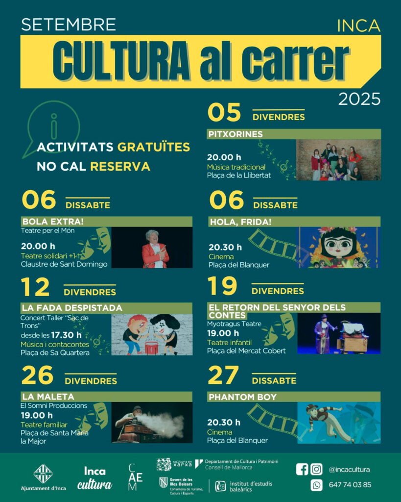 Inca saca la cultura a la calle con música, teatro y cine para todos los públicos gracias al programa ‘Setembre Cultura al Carrer’.