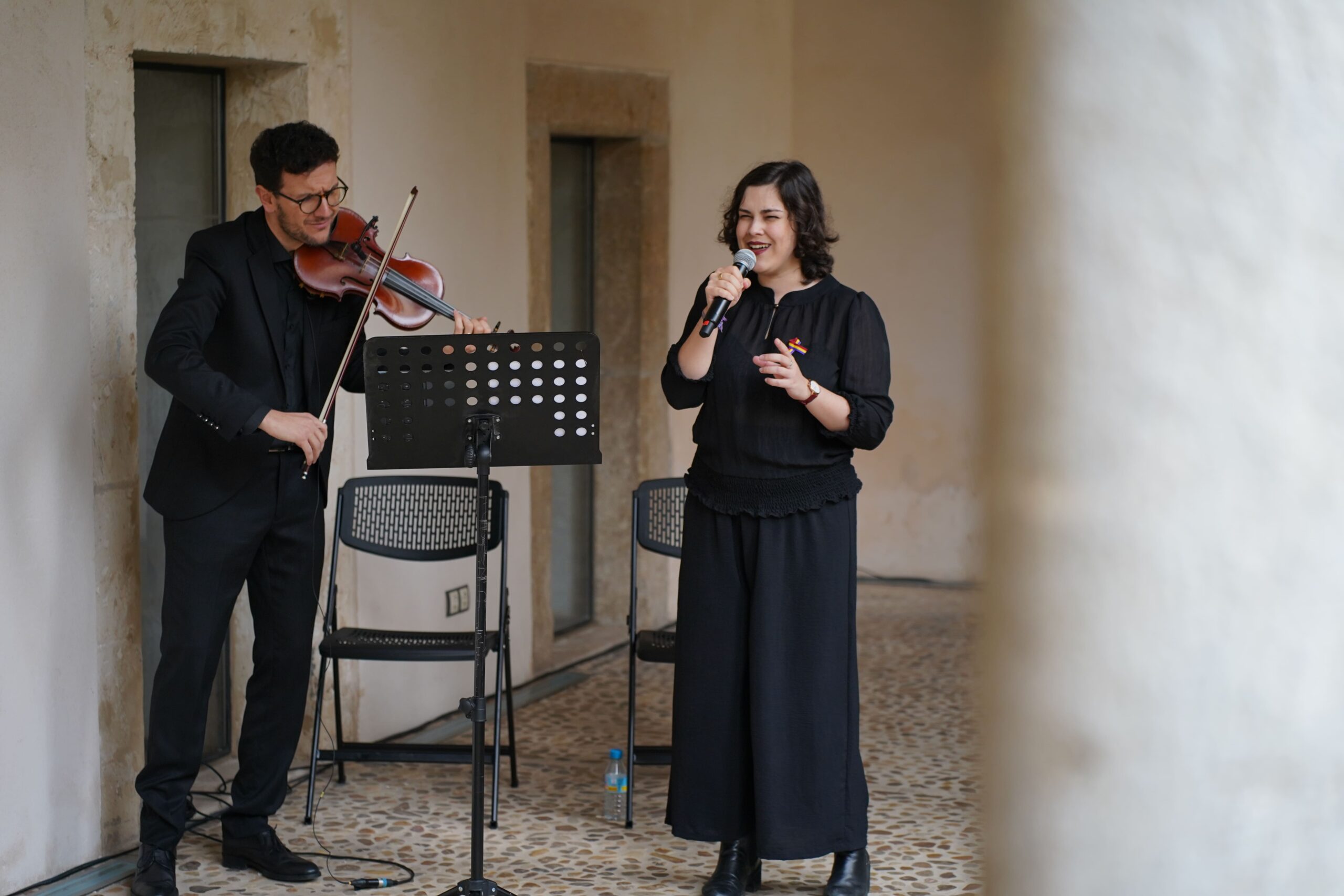 Como parte del acto conmemorativo, se ha llevado a cabo la tradicional ofrenda floral en honor a las víctimas de la Guerra Civil, un emotivo momento acompañado musicalmente por Ester Lázaro y Xisco Amengual, quienes han interpretado el Cant dels Ocells.