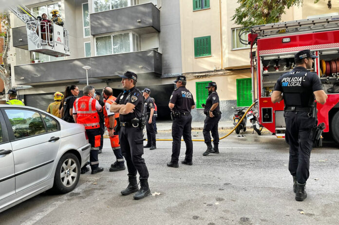 Los vecinos de la calle Reyes Católicos de Palma han arrancado sobresaltados el sábado debido al incendio de un edificio parcialmente ocupado.