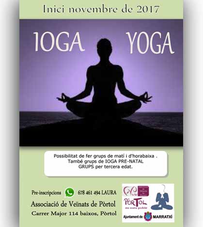 La Associació de Veïnats de Pòrtol, anuncia para este próximo mes de noviembre el inicio de clases de yoga. Hay posibilidad de hacer grupos de mañana y tarde, así como para formar grupos de Yoga pre-natal.