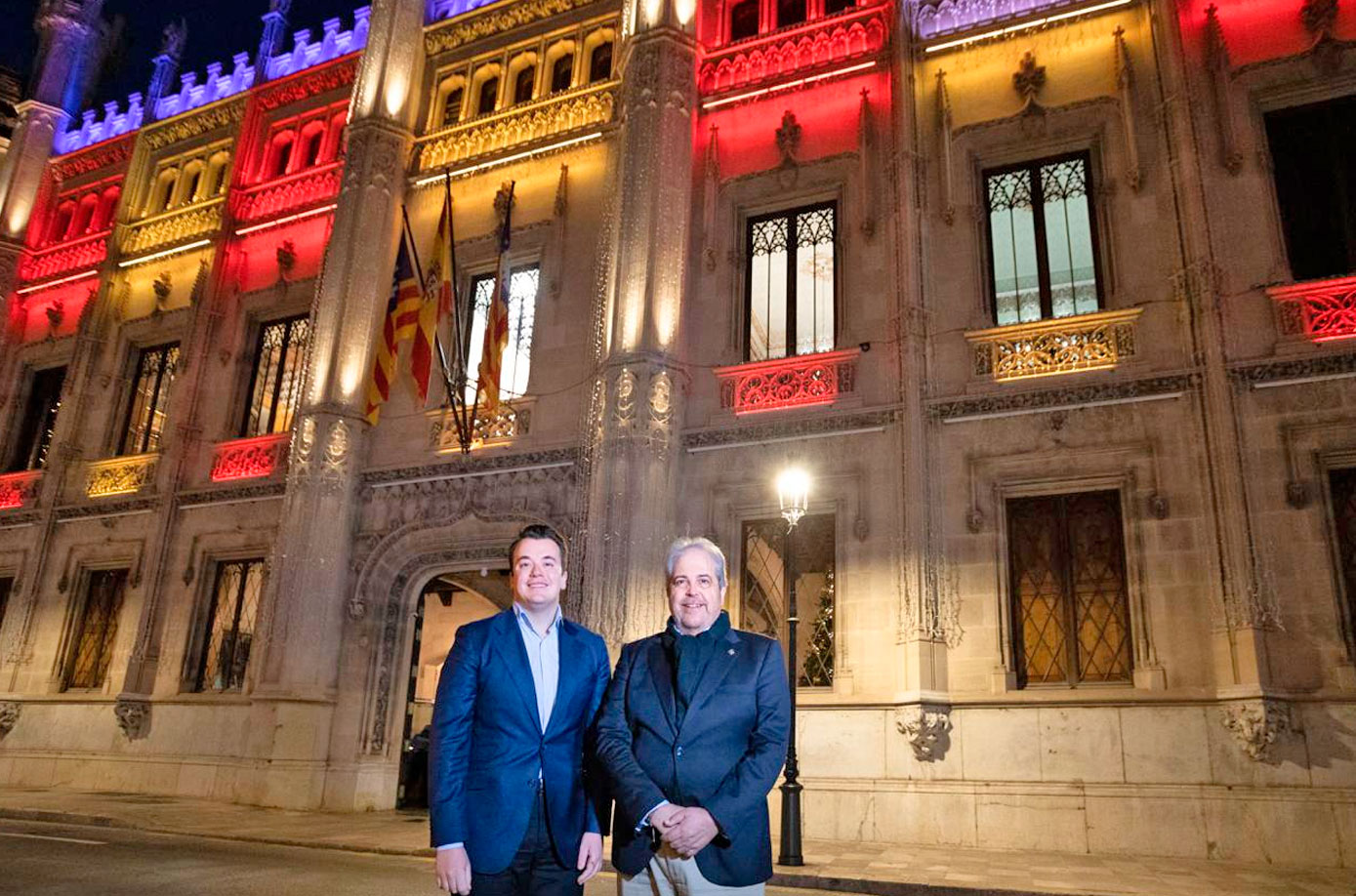 El Consell de Mallorca ha estrenado la nueva iluminación de la fachada del Palau del Consell. La institución insular ha cambiado todo el equipamiento lumínico del frontal de la sede principal, que había quedado desfasado, y ha mejorado así la eficiencia energética. Ahora todo el sistema tiene un menor impacto visual, consume mucho menos y produce una menor contaminación lumínica.