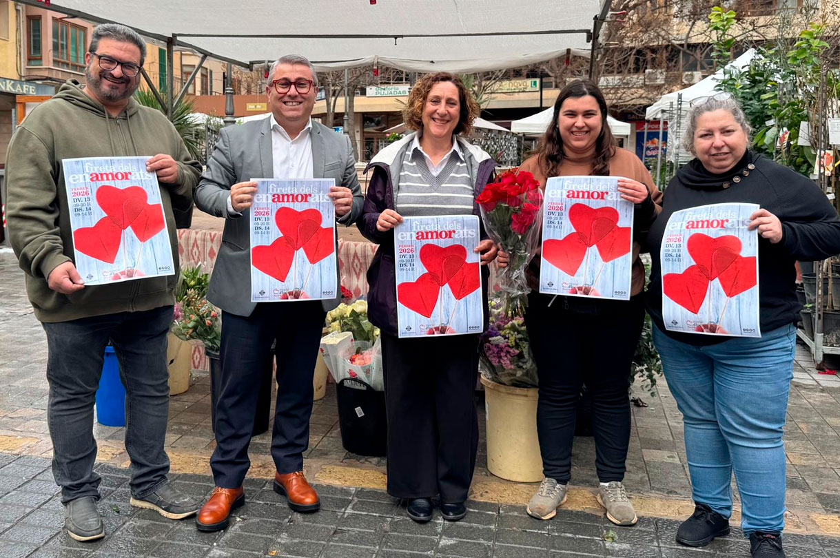 El Ayuntamiento de Inca, en colaboración con el Sindicato Obrero La Pau, organiza los próximos viernes 13 y sábado 14 de febrero una nueva edición de la Fireta dels Enamorats. Es una cita ya consolidada en el calendario municipal cuyo objetivo es dinamizar el centro de la ciudad y reforzar el apoyo al producto local coincidiendo con las fechas de Sant Valentí.