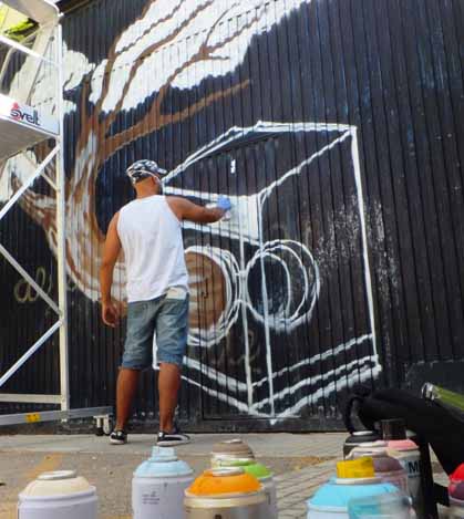 El artista urbano Marc Peris, SOMA, está usando la puerta del almacén de la Fundació Deixalles en Palma como lienzo de su grafiti conmemorativo de los 30 años de vida de la entidad. Una alegoría de la reutilización de una lavadora que recobra vida en la naturaleza.