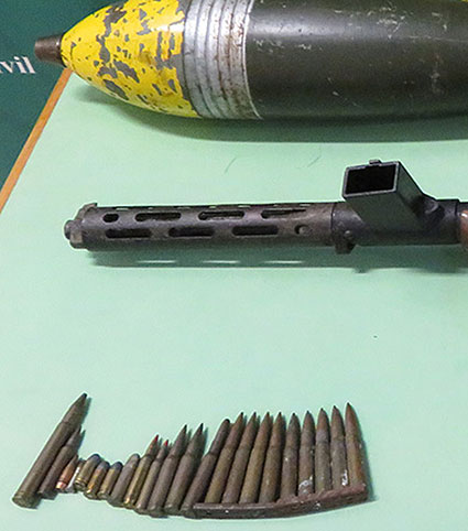 En un establecimiento de Palma, se incautó un subfusil inutilizado del tiempo de la Guerra Civil Española denominado “Naranjero”, una pistola antigua, cartuchería metálica y una granada de mortero de uso militar del calibre 120 mm, expuestas en el local y sin la debida documentación reglamentaria para su tenencia.