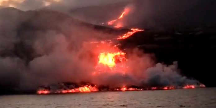 La lava del volcán de La Palma ha llegado en la medianoche del martes al miércoles al mar.