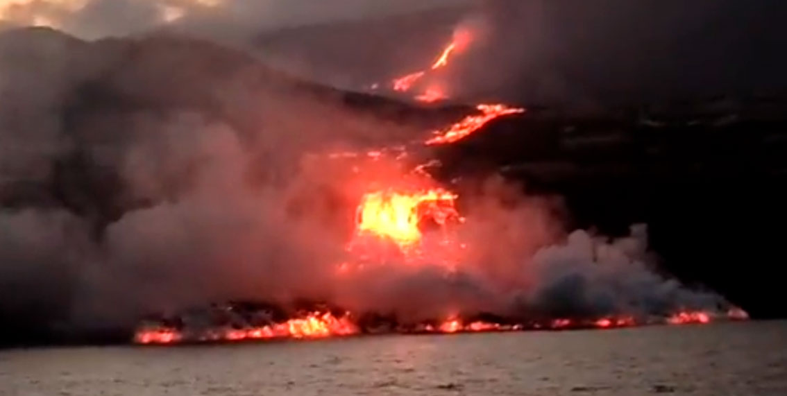 Era un momento esperado desde que el volcán Cumbre Vieja entró en erupción el domingo 19 de septiembre. La colada de lava ha entrado en contacto con el mar en Tazacorte. Ha sido en la medianoche peninsular, las 23 horas en Canarias.