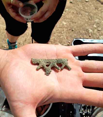 El campo de trabajo que este verano tiene lugar en el Castell d’Alaró ha permitido localizar una hebilla que los arqueólogos datan inicialmente de la época bizantina. Este hallazgo es el más importante hecho durante la edición de este año durante la cual también se ha localizado un doblón mallorquín datado durante el reinado de Felipe V. Además, las tareas en el campo de trabajo han permitido sacar a la luz numerosos restos cerámicos de diferentes épocas.
