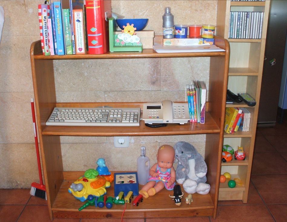 Algunos cajones y armarios sí están a disposición de la curiosidad de los niños, cajones con trapos, coladores, ollas, tapas de las ollas… Las puertas de los muebles son muy ligeras por lo que resulta muy difícil que se puedan lesionar los dedos o las manos. Y todos los juguetes están a mano, igual que el colchón donde en cualquier momento se pueden tumbar a descansar. En el exterior, el porche está cerrado, así podemos salir también los días de viento o lluvia para al menos poder ver cómo se mueven los árboles, escuchar el sonido de la lluvia, oler la tierra mojada… Más allá hay un espacio donde poder correr con los triciclos o corre pasillos (motos) o jugar con las pelotas.