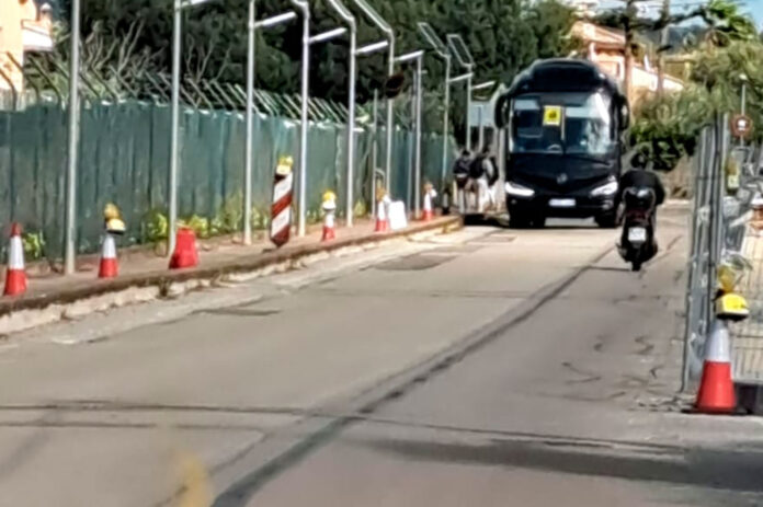 La combinación es delicada: carriles estrechos, cruces de vehículos, presencia de autobuses y tránsito peatonal en un tramo que debería contar con protección reforzada.