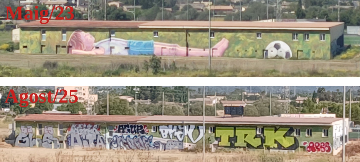 Un vecino de Marratxí denuncia que el Ajuntament ya fue informado de la vandalización del mural de Joan Agujló hace más de 1 año. «Dijeron que lo arreglarían inmediatamente», expone.