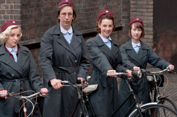 ‘¡Llama a la comadrona!’, del sello Neal Street Productions -la productora fundada por Sam Mendes, Pippa Harris y Caro Newling- y emitida en el canal de la BBC One, cuenta como grandes protagonistas con Jessica Raine (la enfermera Jennifer «Jenny» Lee), Vanessa Redgrave (Jenny Lee ya anciana), Laura Main (la hermana Bernadette), Jenny Agutter (la hermana Julienne), Judy Parfitt (la hermana Monica Joan) y Stephen McGann (el Dr. Patrick Turner).