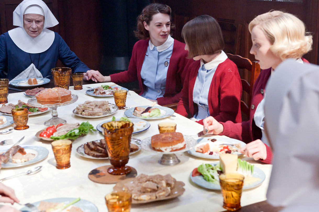 Junto a ellas, completan el reparto de la ficción: Pam Ferris (la hermana Evangeline), Helen George (la enfermera Beatrix «Trixie» Franklin), Bryony Hannah (como la enfermera Cynthia Miller), Miranda Hart (la comadrona Camilla «Chummy» Browne), Dorothy Atkinson (la enfermera Auxiliar Jane Sutton), Cliff Parisi (Frederick «Fred» Buckle), Ben Caplan (el agente de policía), Max Macmillan (Timothy Turner), Emerald Fennell (la enfermera Patience «Patsy» Mount),
