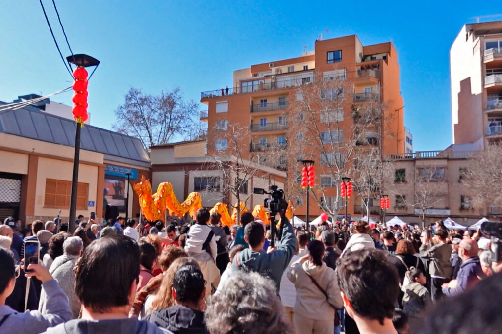 El baile del dragón y los leones ha vuelto a convertirse en la gran atracción de la celebración del Año Nuevo Chino en Palma. Con una temperatura agradable y un sol radiante, la plaza de Pere Garau se ha llenado este domingo hasta la bandera. Los organizadores han expandido a ambos lados las celebraciones para poder acoger a la multitud que ha acudido a compartir la celebración.